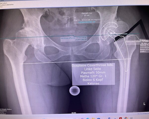 Η 47χρονη ασθενής αντιμετώπιζε εδώ και χρόνια, έντονο πόνο και στα δύο δυσπλαστικά της ισχία και ιδιαίτερα στο αριστερό! Ο πόνος επιδεινωνόταν με την κίνηση και την ορθοστασία, ενώ παρουσίαζε σημαντικό περιορισμό στη βάδιση και δυσκολία στις καθημερινές της δραστηριότητες. Όπως χαρακτηριστικά ανέφερε, «δεν μπορώ να περπατήσω πάνω από λίγα λεπτά χωρίς πόνο και κουτσαίνω συνεχώς».