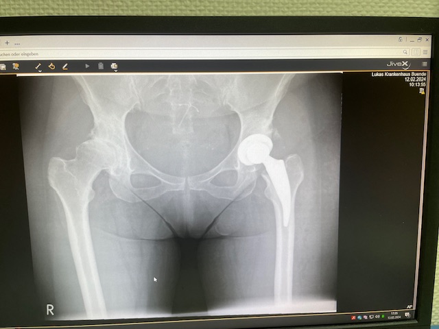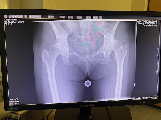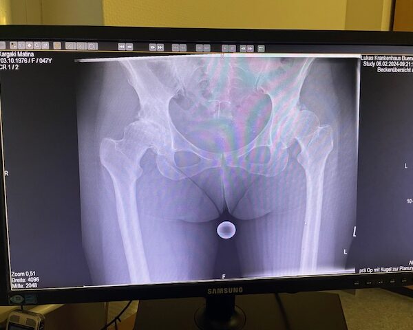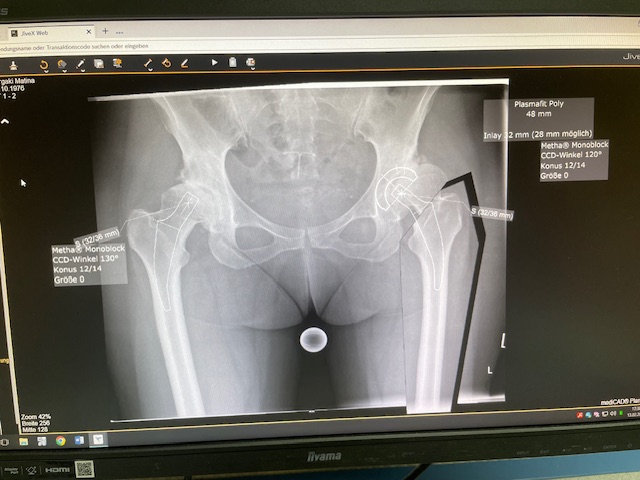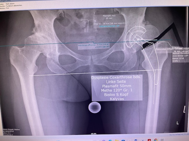 Ο ακτινογραφικός έλεγχος έδειχνε προχωρημένες εκφυλιστικές αλλοιώσεις και αλλοίωση της ανατομίας της κοτύλης και του μηριαίου.