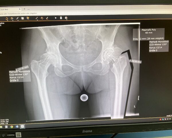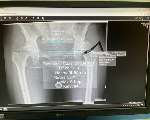 Το 2024 όταν πλέον η ασθενής απευθύνθηκε σε εμένα, ακολούθησε εκ νέου ακτινογραφικός έλεγχος ώστε να μπορέσει να πραγματοποιηθεί ο προεγχειρητικός ψηφιακός σχεδιασμός του Χειρουργείου.